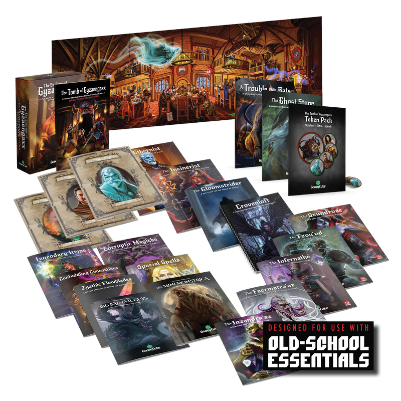 Get The Tomb of Gyzaengaxx, The Environs of Gyzaengaxx, plus all of the amazing Tomb of Gyzaengaxx stretch goals in high-quality physical form — printed for you! This bundle package includes all items from the Gooey Haul.